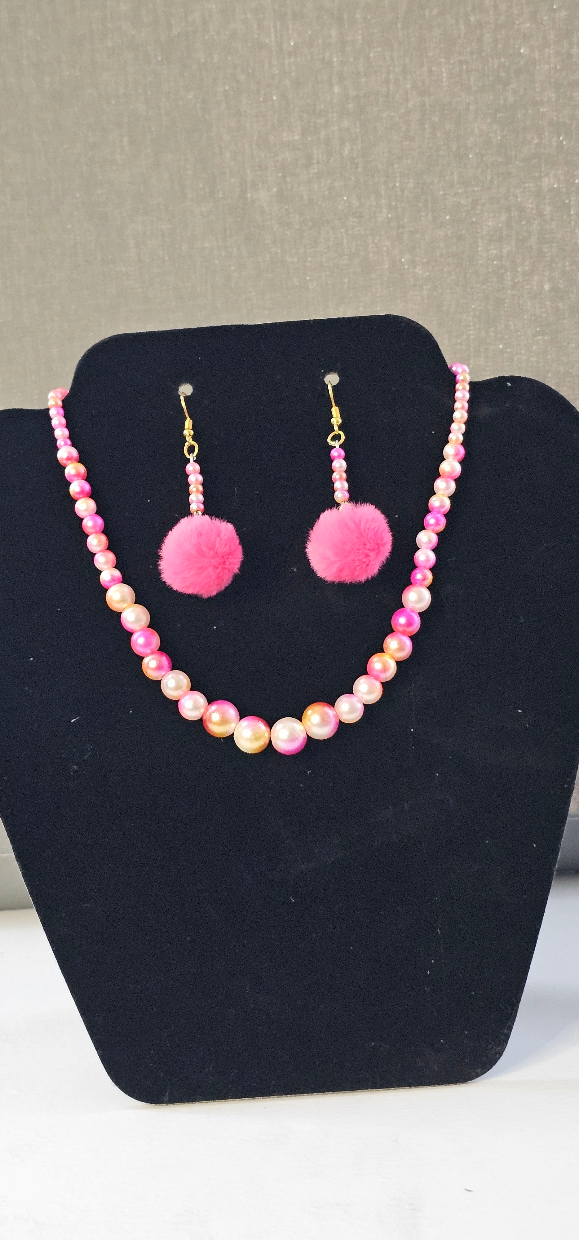 Our pink Barbie Girl set comes with hoop drop earrings, drop puff ball earrings, and a necklace made with the same colour beads. Please note the 2 piece set consists of 1 pair of the barbie girl hoop drop earrings and the necklace, whilst the 3 piece set consists of both pairs of barbie girl hoop drop earrings , drop puff ball earrings and the necklace.